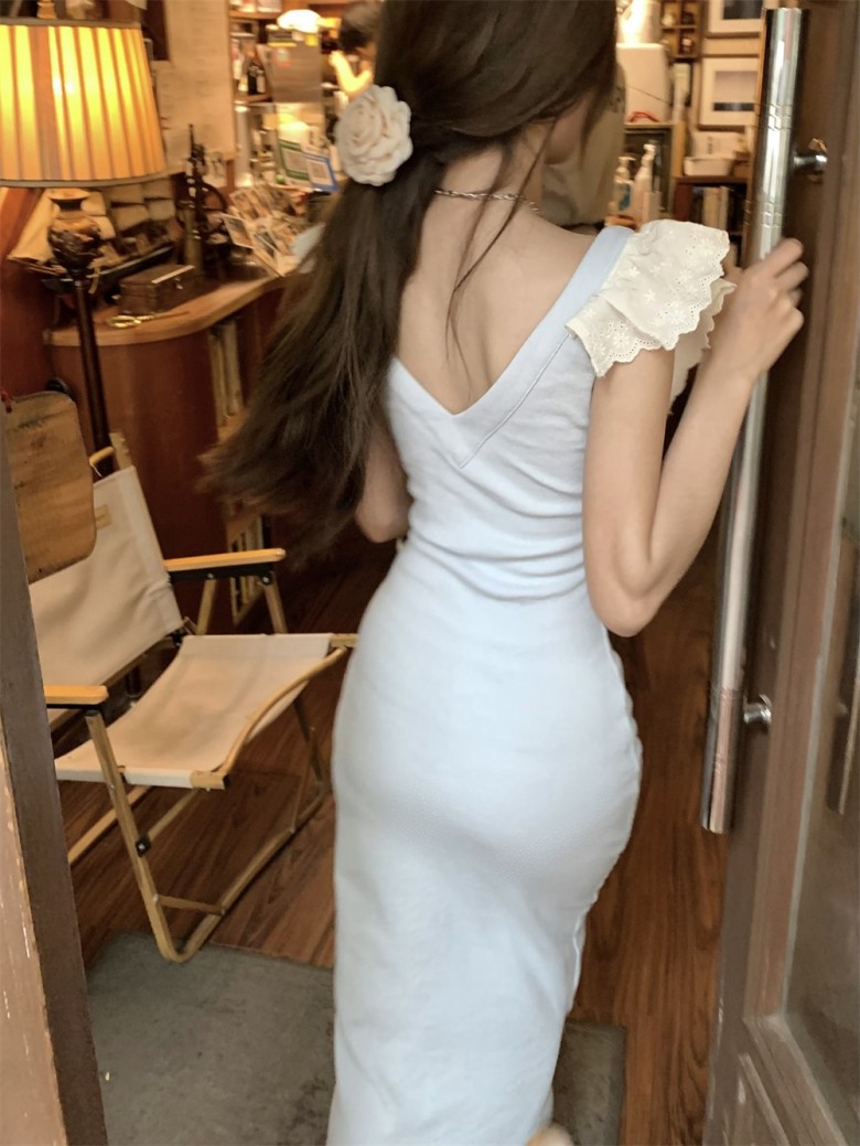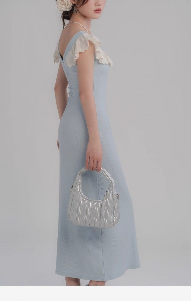 - S501211 넥 레이스 프릴 슬림핏 민소매 나시 롱 원피스 여리한