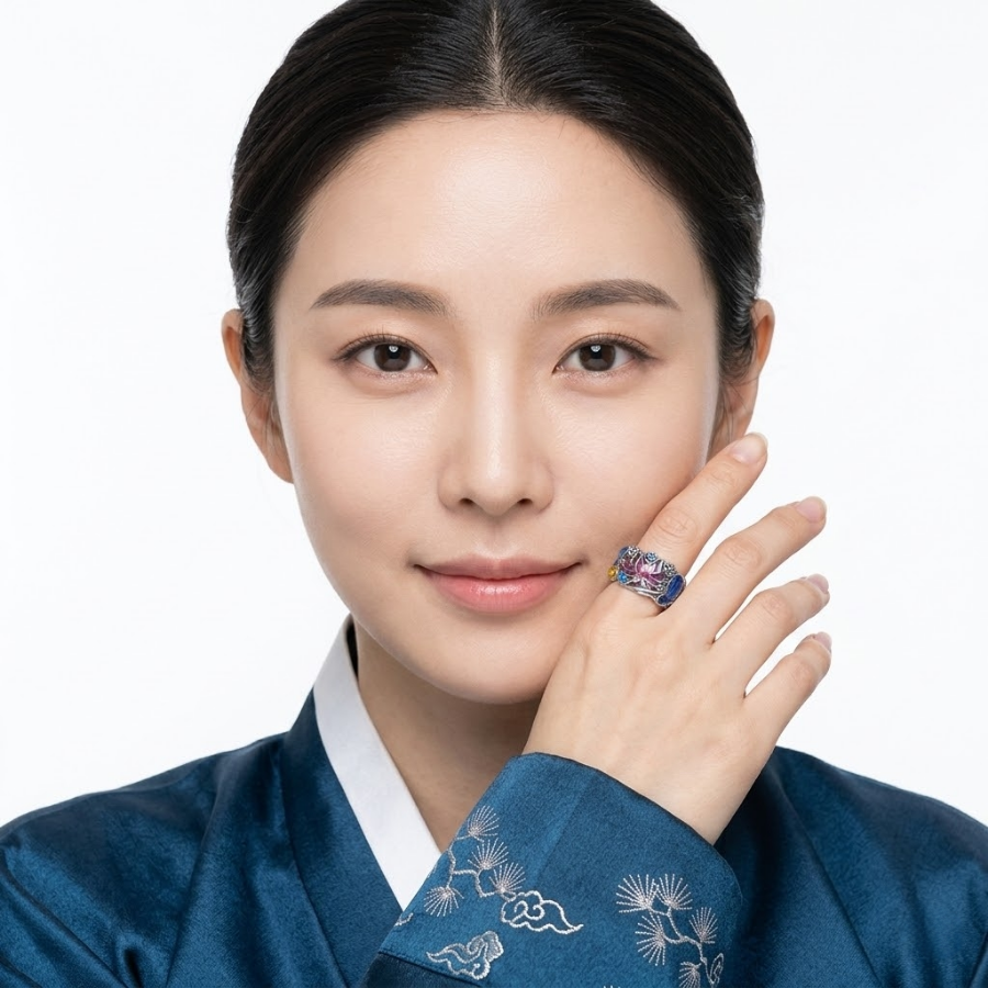 - 한복 반지 사이즈조절 연꽃무늬 오픈링 액세서리