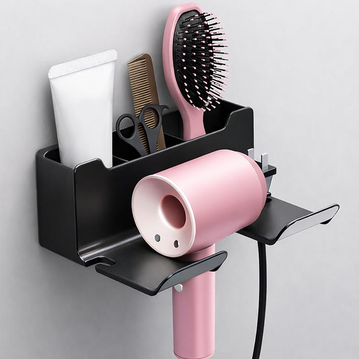 - 깔끔한 욕실 정리 벽 수납함 접착식 드리이기 거치대
