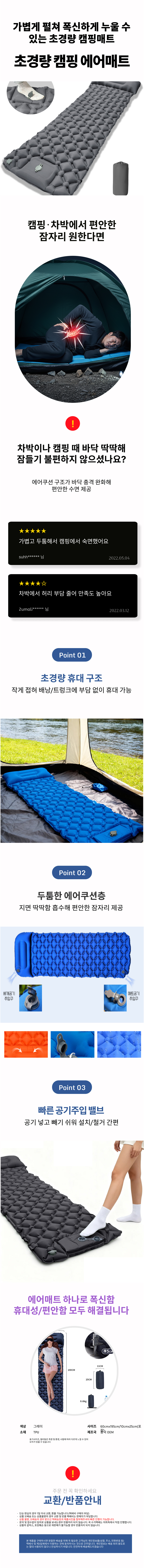 쿠션 침낭 실내 초경량 베게일체형 차박쿠션 매트