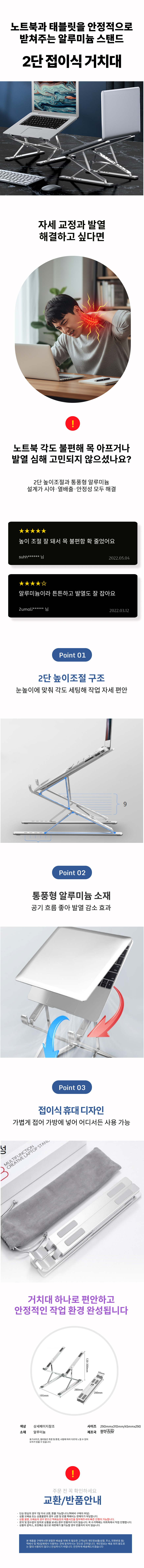 통풍거치대 노트북 거치대 사계절 각도조절 쿨링 2단