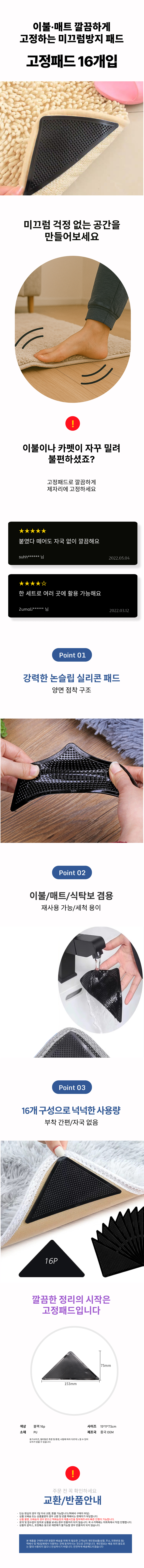 16입 러그 미끌리는 16개 방석 미끄럼방지패드 패드