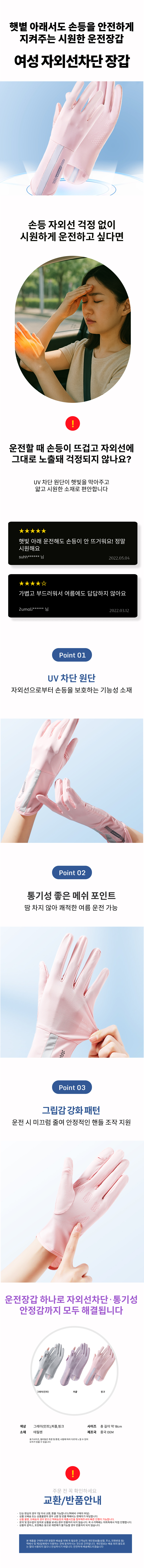 냉각 화면터치 UV차단 운전 폰터치 손가락 장갑 봄