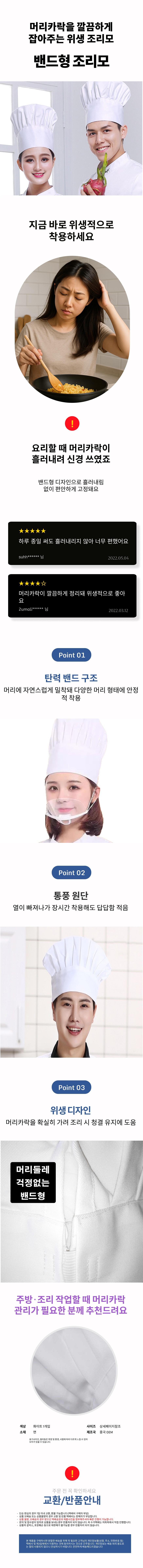 조리사 쉐프 고급형 조리사모자 걱정없는 조리모