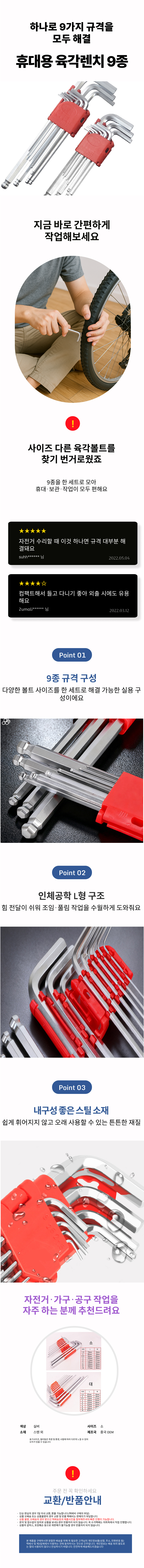 수공구 세트 육각 9종 볼렌치 렌치세트 육각렌치 렌치