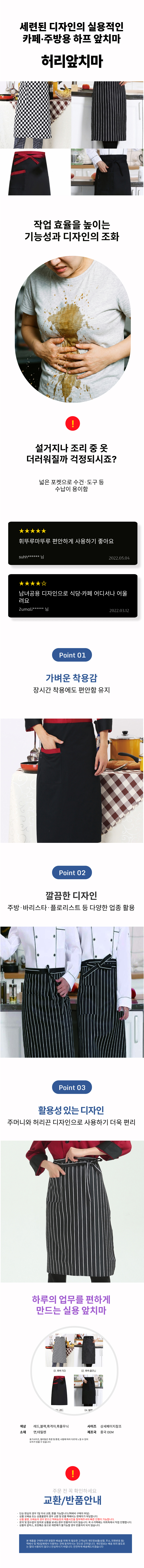 세프앞치마 쉐프 업소용 하프랩 미용 앞치마 카페