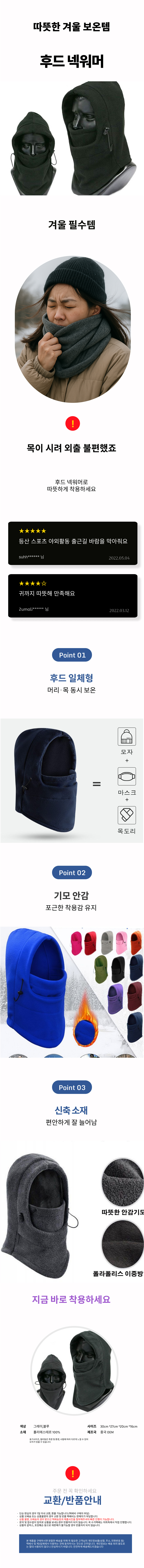 방한용품 바이크워머 작업용 넥워머 두건형 라이딩