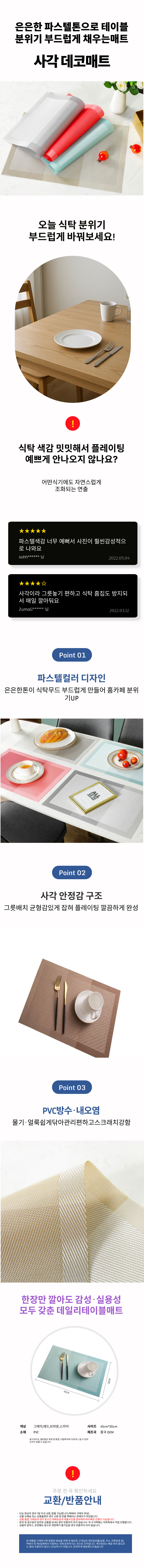 매트 테이블세팅 플레이팅 고급 컵받침 사각 데코