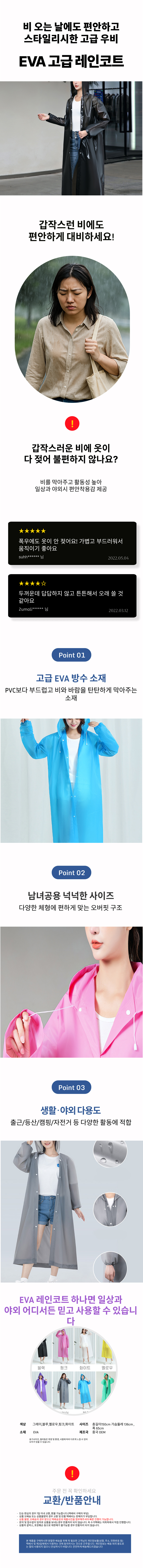 레인코트 등산용 다회용 방수코트 자전거 우비 EVA