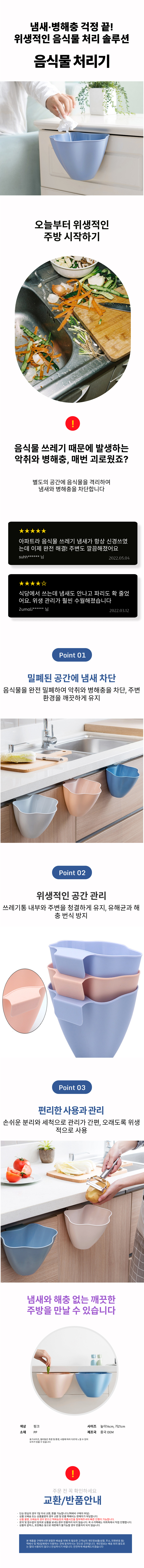 싱크대 다용도 정리함 걸이형 음식물 휴지통 주방