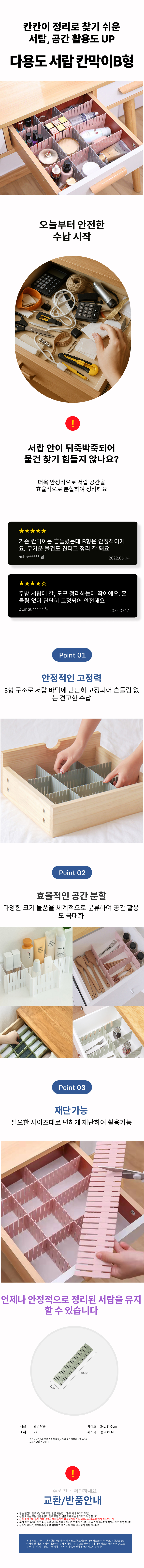 서랍 수납칸막이 서랍장 정리 다용도 길이 정리함