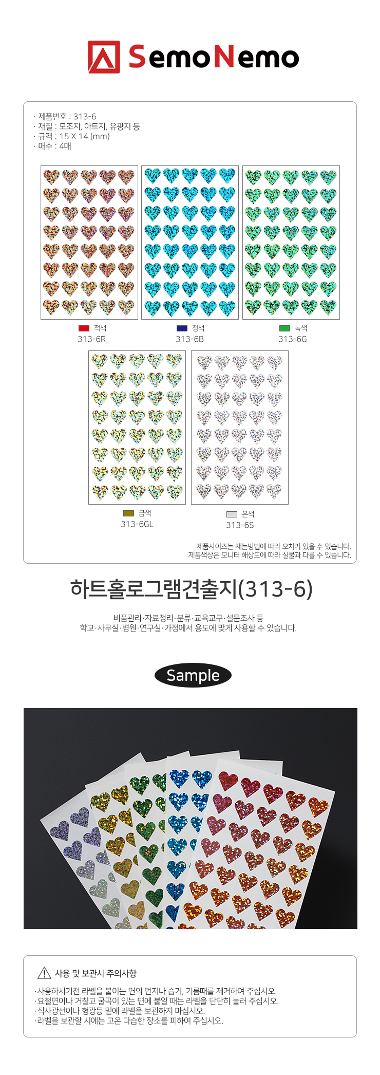 [세모네모] 1000 모양견출지(하트홀로) 10-313-6B 4매