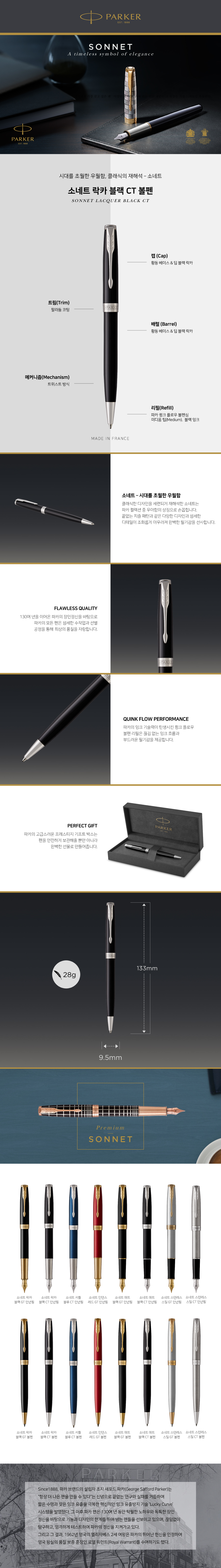 파카 소네트 N 락카 블랙 볼펜 CT-B