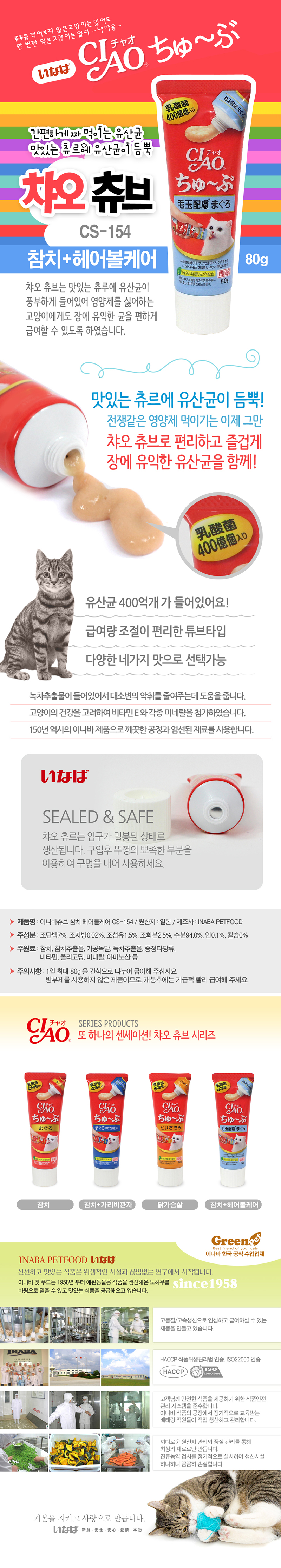 이나바 챠오 츄브 CS-154(참치+헤어볼케어) 80g