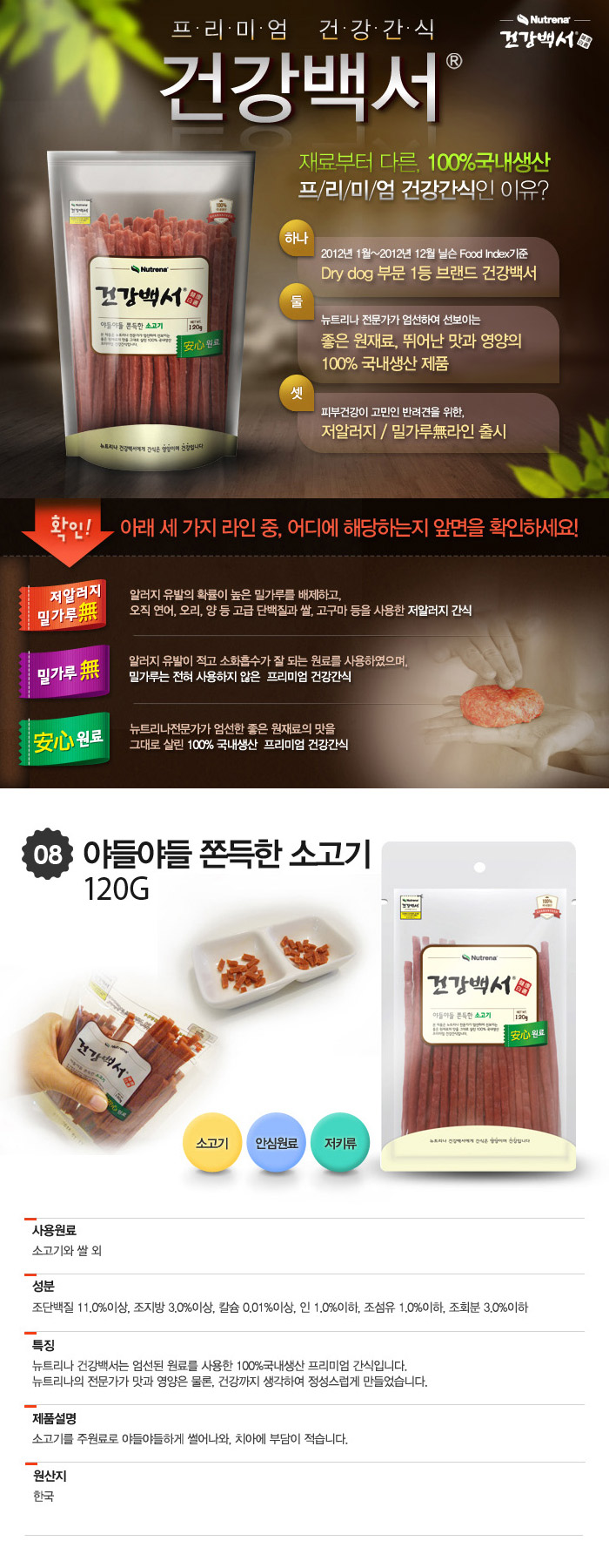 뉴트리나 건강백서 야들야들 쫀득한 소고기 120g(8)