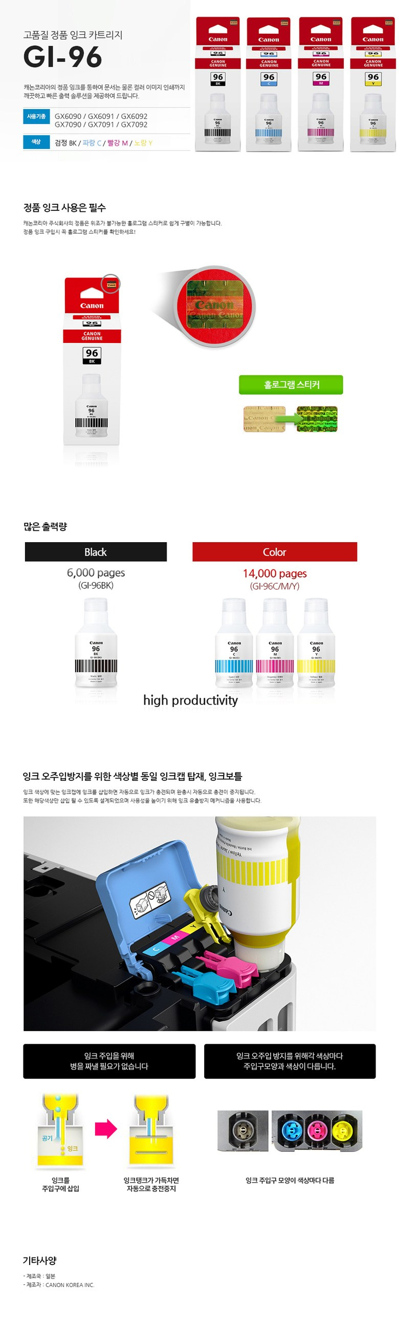 [캐논] 잉크 GI-96 빨강잉크 / 잉크