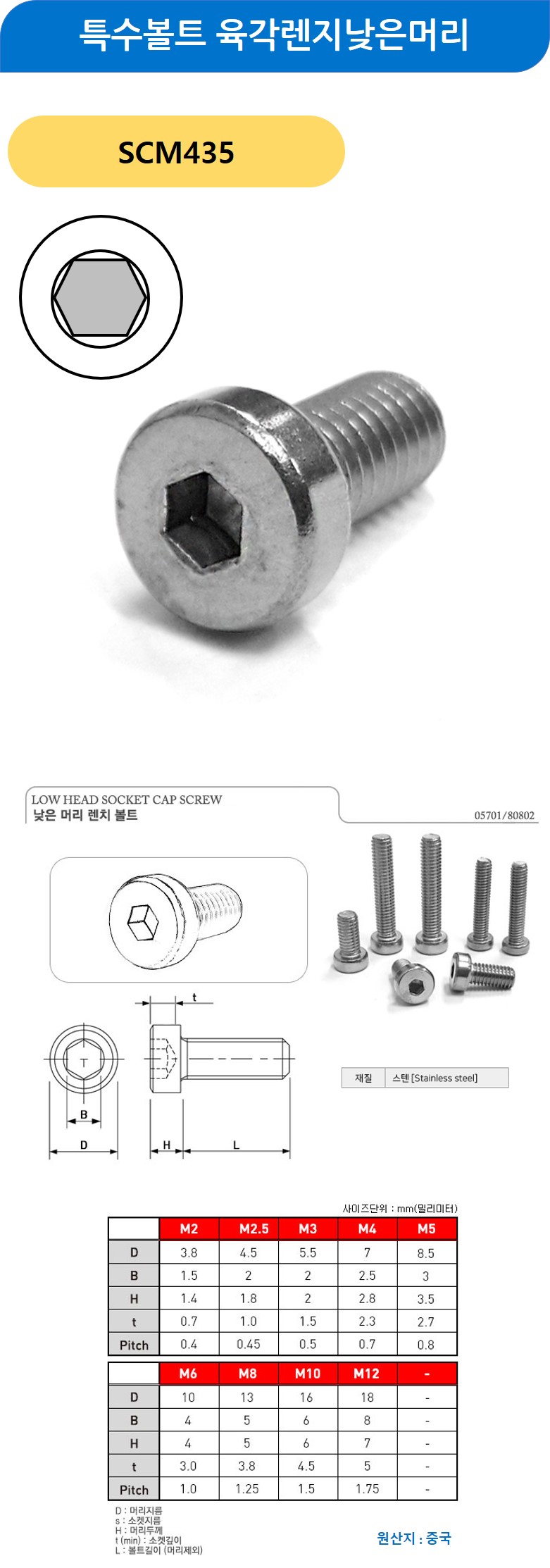 특수볼트 육각렌지낮은머리 스텐 M5x15mm 500개
