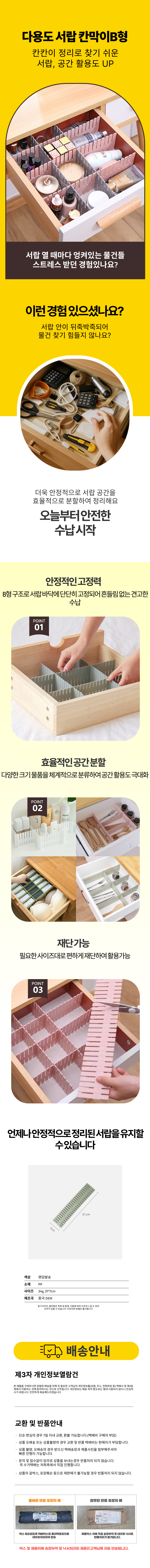 길이 B형 서랍파티션 트레이 서랍장칸막이 정리함