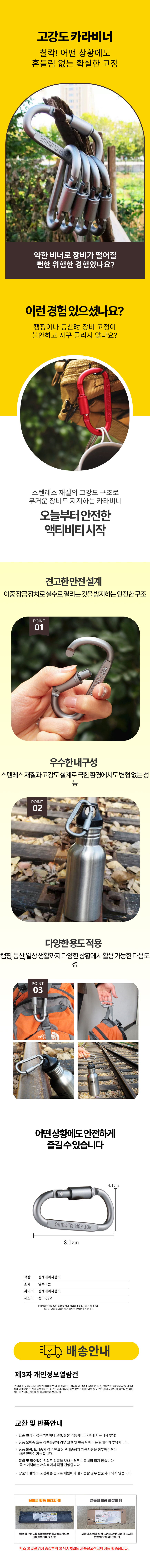 키링 실버 카라비너 알루미늄 등산 타프 고리 D형