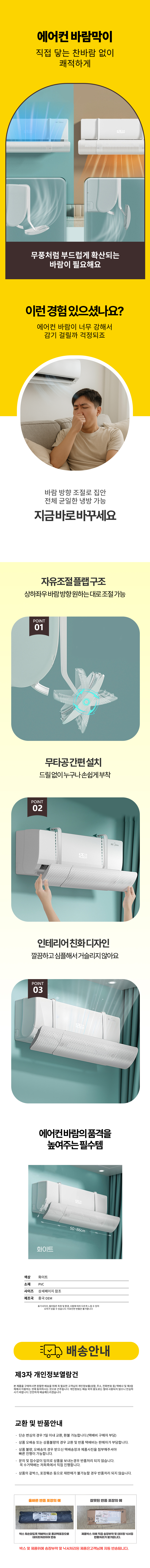 무타공 벽걸이 무풍 방향조절 바람막이 에어컨날개