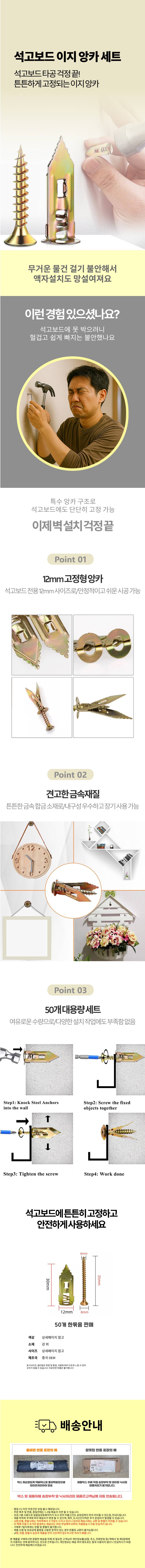 자천공 석고피스 12mm 이지 50개묶음 고정력 앙카