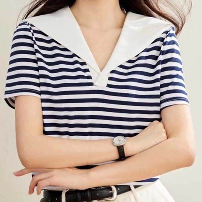 가로줄 여름티 단정하면서도 캐주얼한 빅카라 반팔티