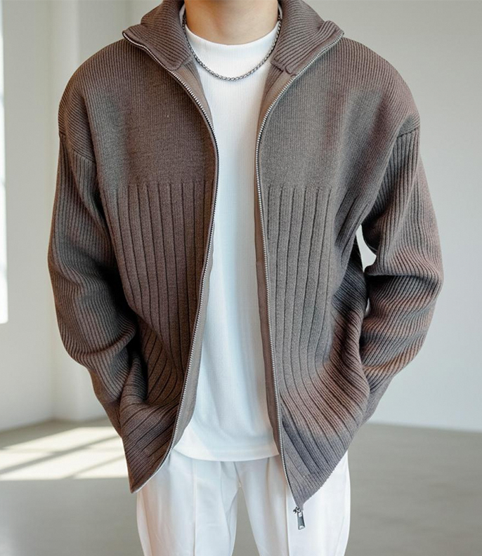 에노브 남자 집업 니트 가디건 간절기 아우터 데일리 자켓 골지 기본템