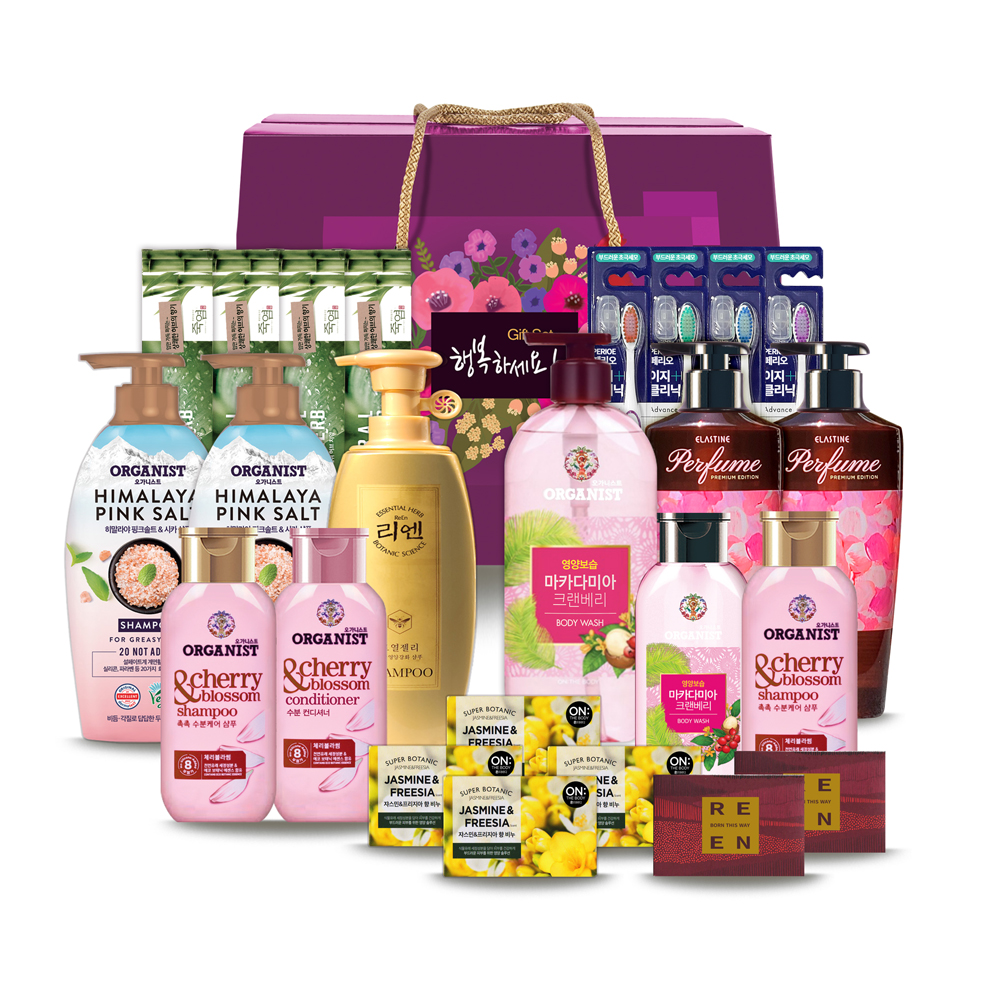 · 리엔 로열젤리 샴푸 400ml 1개 · 리엔 클렌징바 비누 80g 2개 · 엘라스틴 데일리리페어퍼퓸 샴푸 400ml 2개 · 오가니스트 핑크솔트 샴푸 380ml 2개 · 오가니스트 마카다미아 바디워시 480ml 1개 · 오가니스트 체리블라섬 샴푸 200ml 2개 · 오가니스트 체리블라섬 컨디셔너 200ml 1개 · 오가니스트 바디워시 190ml 1개 · 온더바디 보타닉 비누 80g 4개 · 죽염 내추럴프레쉬허브 치약 130g 4개 · 페리오 칫솔 4개 |
