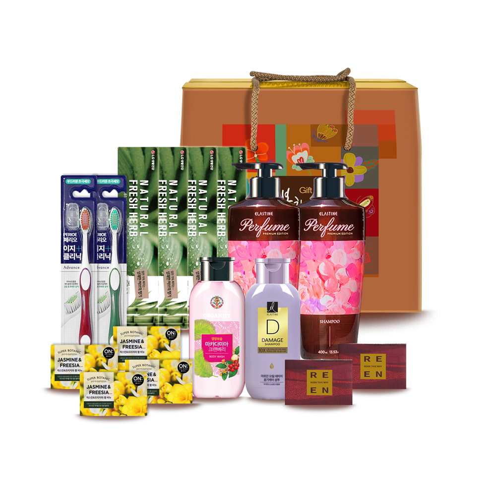 · 리엔 클렌징바 비누 80g 4개 · 엘라스틴 데일리리페어퍼퓸 샴푸 400ml 2개 · 오가니스트 마카다미아 바디워시 480ml 1개 · 오가니스트 바디워시 190ml 1개 · 오가니스트 체리블라섬 샴푸 200ml 1개 · 자연퐁 용기 솔잎 490ml 1개 · 페리오 캐비티케어 치약 90g 6개 · 페리오 칫솔 4개 |