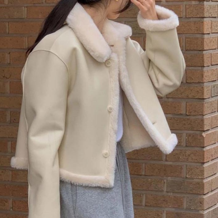 세련된 여성 레더 아우터 양모 점퍼 리버시블 디자인